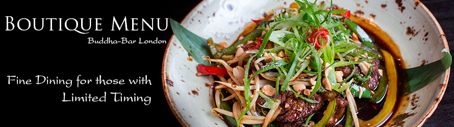 hour if so desired), Buddha-Bar’s Boutique Menu is tailor-made for weary shoppers, busy executives and ladies - and gentlemen - who lunch.
